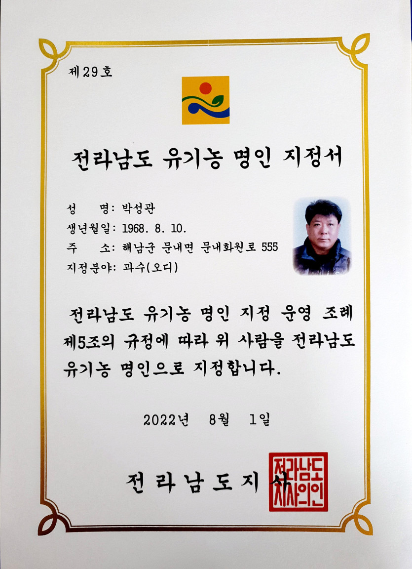 2022 전라남도 유기농 명인 지정서 페이지 정보 작성자 최고관리자 댓글 0건 조회 22회 작성일 24-12-04 11:31 목록 본문 2022 전라남도 유기농 명인 지정서 이전글2023 농촌융복합산업 사업자 인증서 24.12.04 다음글2021 해남군 농업인 대상(원예특작) 24.12.04 댓글 0 댓글목록 등록된 댓글이 없습니다.
