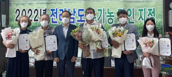 전남도는 이들 유기농 명인들에게 지정서를 전달하고 농가에 현판과 안내표지판을 설치했다.